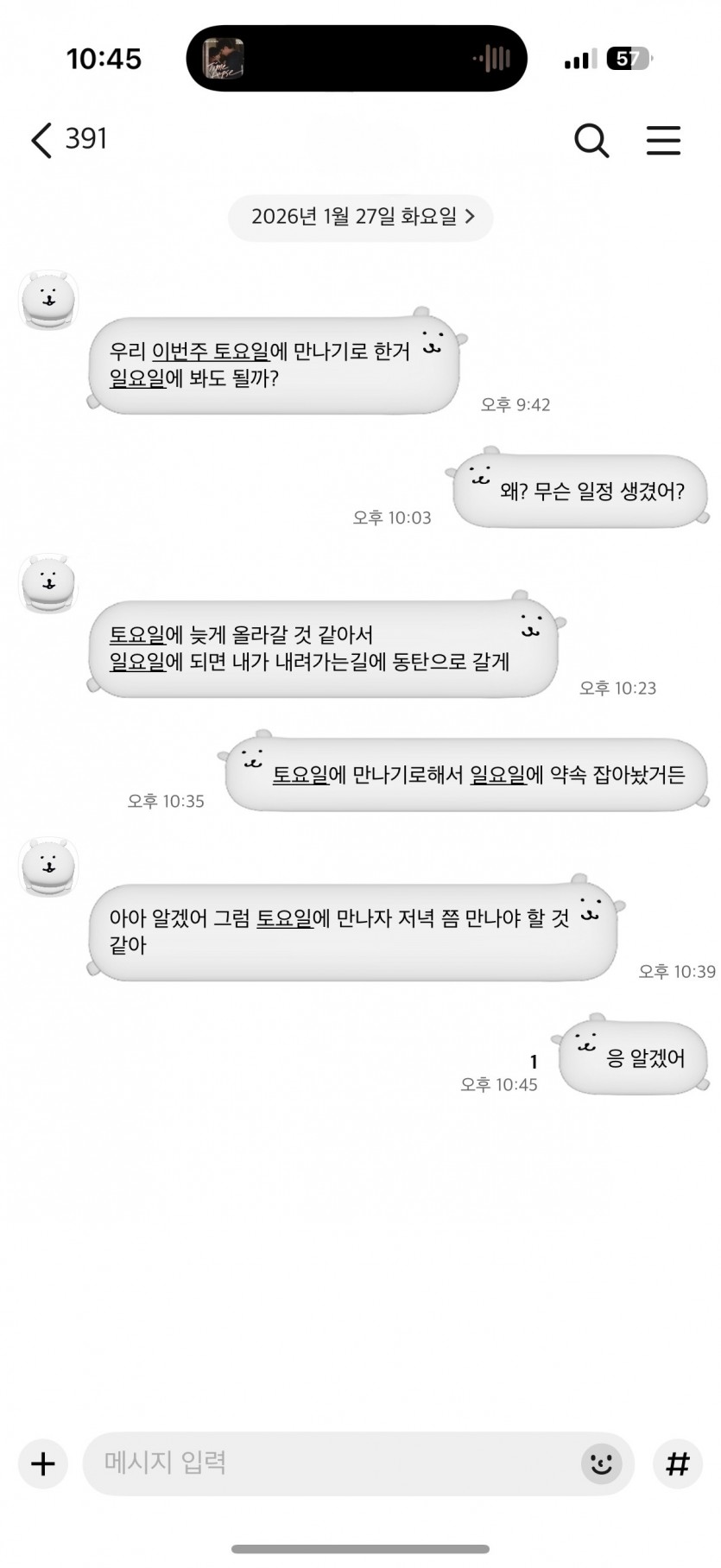 마지막 답장으론 토욜에 연락주겠대